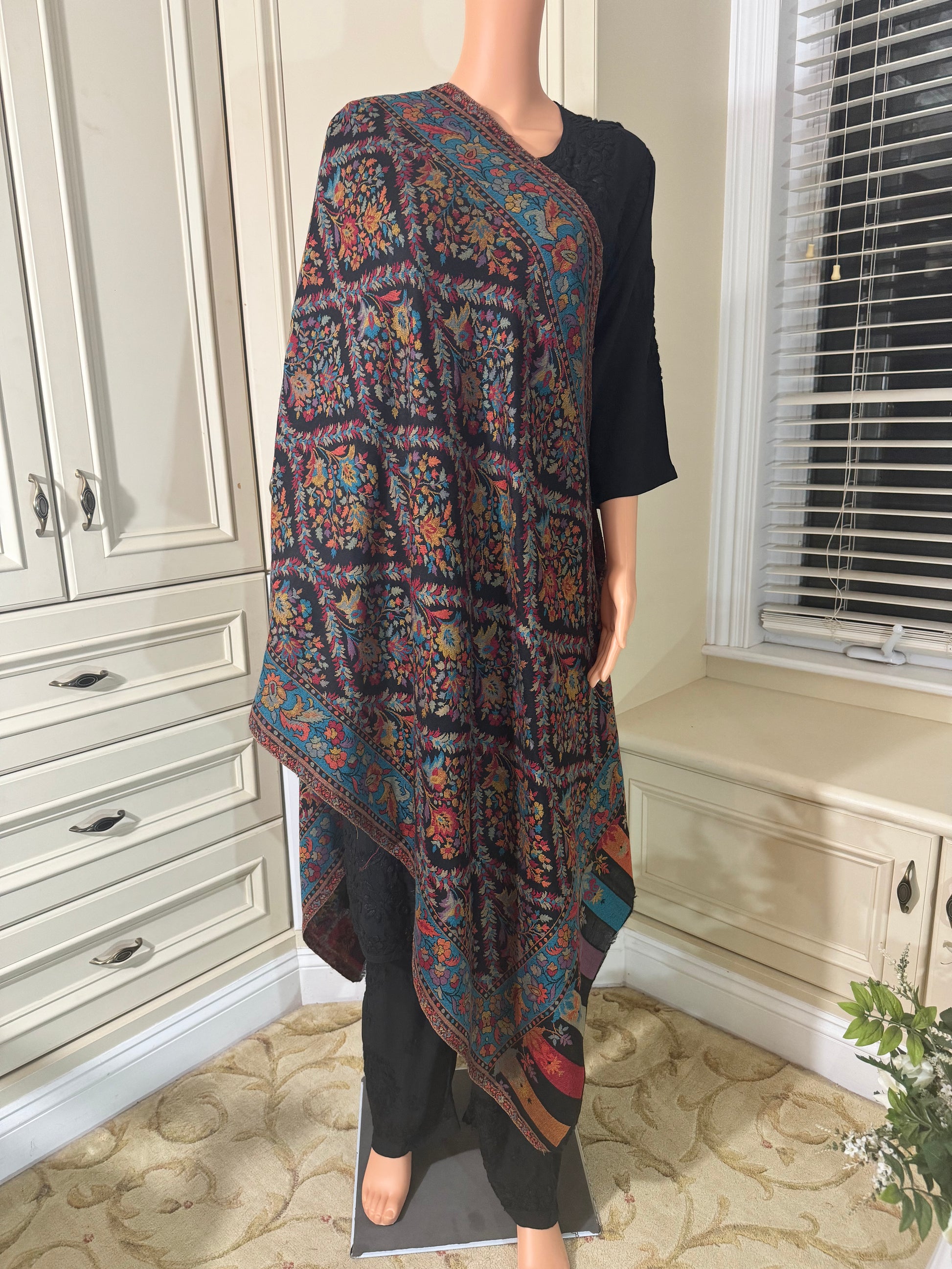 "Indulge in the luxury of timeless craftsmanship with our Kani Stoles, a masterpiece of Kashmiri artistry. Each stole is handwoven on traditional looms, using intricate techniques passed down through generations. The vibrant designs, inspired by nature and culture, are created with a fine interplay of colors, making every piece a unique work of art. Crafted with precision and care, Kani stoles are not only lightweight and versatile but also unisex, offering elegance and warmth for any occasion. Their luxurious texture and intricate patterns make them perfect for casual outings or special events. Embrace the beauty of heritage and style with our Kani Stoles—an accessory that stands out, every time."